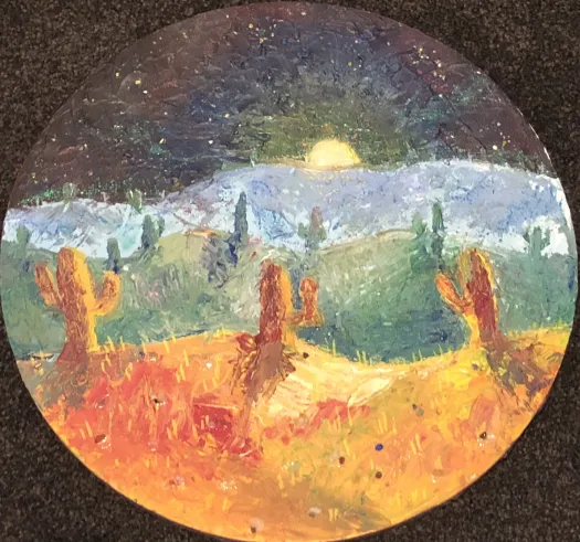 This is one or oris recent paintings, he was playing around with colours and textured paste to create this Wild West painting