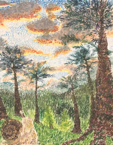 This painting belongs to a pair of painting depicting an abstract landscape, one in the morning and one at night. The second painting was lost however.