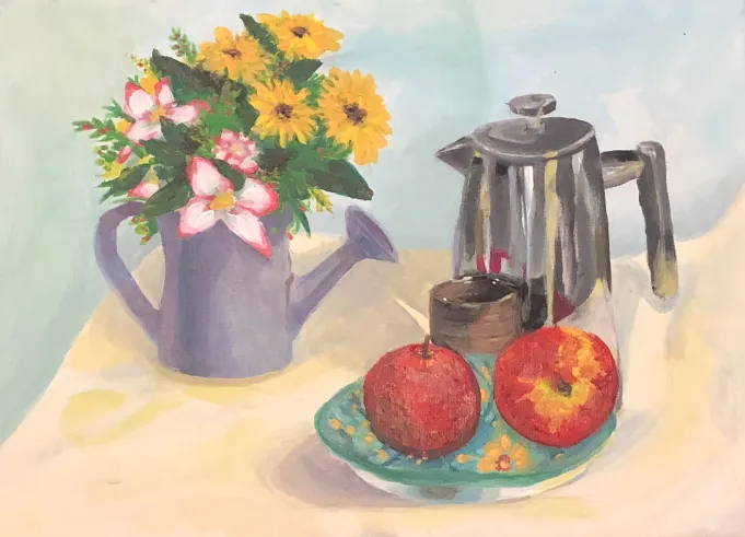 This is one of the only still life scenes youβll see ori draw. It depicts a kettle among apples. Reflections and shadows are the focal point of this artworkLINK Fretty cool paint